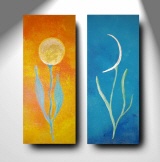 Technik: Acryl, Echtmetallpigmente auf hochwertiger Leinwand auf zwei Keilrahmen à 20 x 50; Serie/Titel: "Sun Flower & Moon Flower"; Diptychon im Format 40 x 50 cm ohne Zwischenräume; handsigniert. Es handelt sich bei dem Bild um ein intern registriertes Original. Die Rückseite der Leinwand ist mit Registriernummer und Stempel versehen. Bei eventuellem Verlust der Sendung wird der Kaufpreis voll zurückerstattet. Die verwendeten Materialien sind von bester Markenqualität und hoher Beständigkeit.