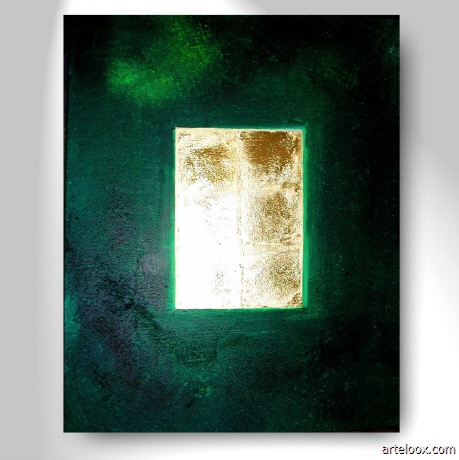 Auf Keilrahmen gespannt ist dieses außerordentlich schöne abstrakte Gemälde mit Kompositionsgold aus der Werkreihe "Gold on Deep Green". Ein absoluter Blickfang! Herrliche Farben, beeindruckende Gestaltung und Ausführung. Im Original noch wesentlich eindrucksvoller! Dieses Bild eignet sich aufgrund seiner außergewöhnlich edlen Ausstrahlung auch für repräsentative Zwecke.