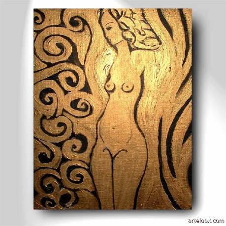 Dieses Gemälde wurde u.a. mit einer außerordentlich hochwertigen Goldfarbe ausgestaltet. Leider läßt sich Gold sehr schwer fotografieren. Es schimmert je nach Lichteinfall unterschiedlich und wirkt auch im Halbdunkel sehr ansprechend und geheimnisvoll. Die außergewöhnliche Farbkomposition harmoniert hervorragend mit dem Gold. Die Seiten des Keilrahmens sind bemalt. Im Original sind die Farben wesentlich schöner und von einer großen Intensität und Leuchtkraft. Abhängig vom Gemäldestandort und der jeweiligen Tageszeit bzw. dem Lichteinfall enthüllt das Bild immer wieder neue Facetten seiner Ausstrahlung und Wirkung. Somit verwandelt es auf stimmungsvolle Weise auch die Atmosphäre des Raumes.