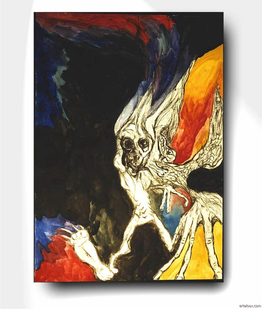 Titel "Der Kampf" Technik Tusche und Acryl Zusatzangaben auf Papier Kategorie Zeichnung/Malerei Preis in Privatbesitz Anmerkungen Format 42 x 58 cm