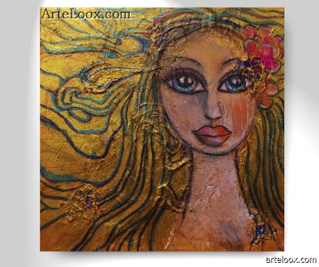 "Golden Dawn" - Big Eye Art, Folk Art, Fairy Art